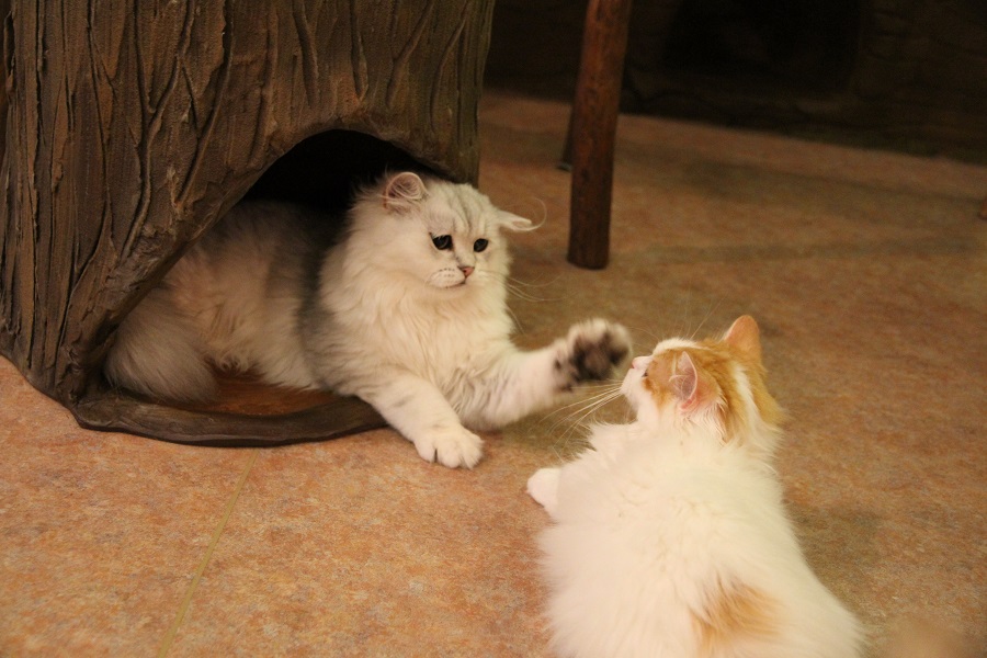 そしてキャットタワーから顔をだしたのは…